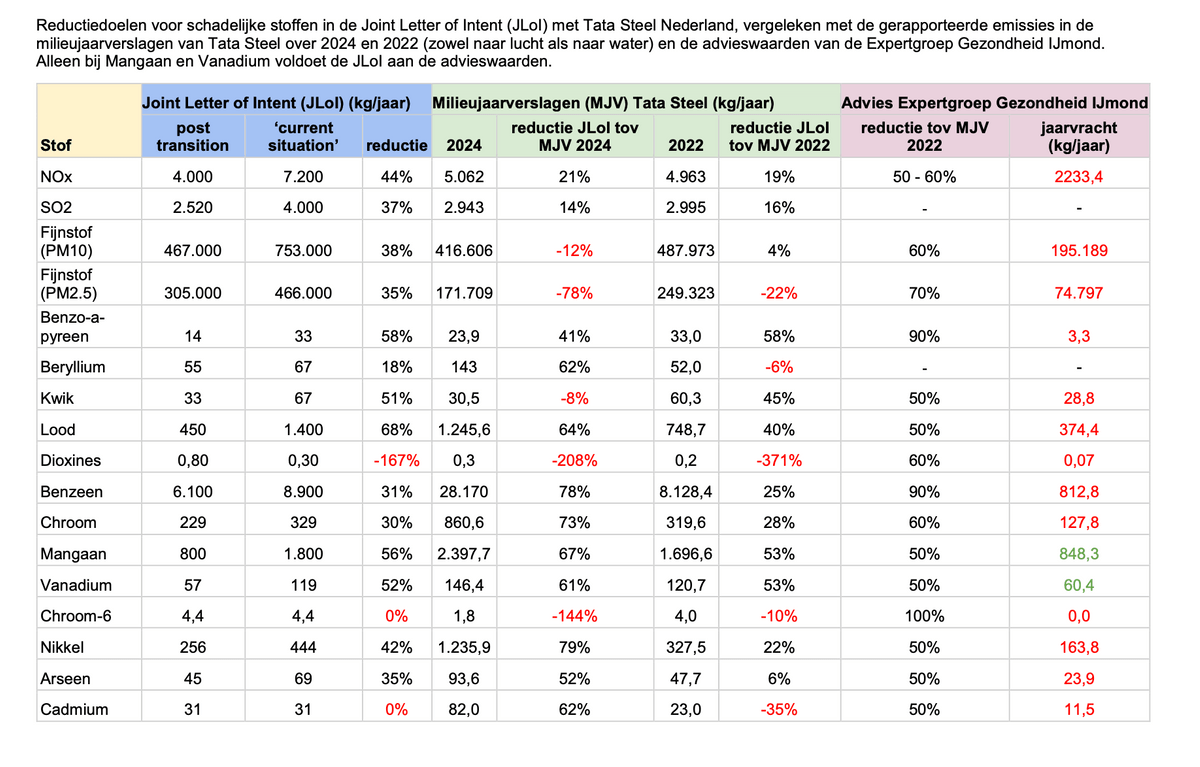 Wij vergeleken de uitstootcijfers en ambities in daling (in percentages) -die in de intentverklaring staan opgesomd onder ‘huidige situatie’ met de cijfers in de Milieu Effect Rapportage (MER) en de Elektronisch Milieujaarverslagen. Deze cijfers komen niet overeen. Het is en blijft dan ook onduidelijk waarop uitstootcijfers en doelstellingen gebaseerd zijn. Daarnaast valt op dat sommige gevaarlijke uitstoot (o.a. fijnstof en dioxine) zelfs zullen toenemen.